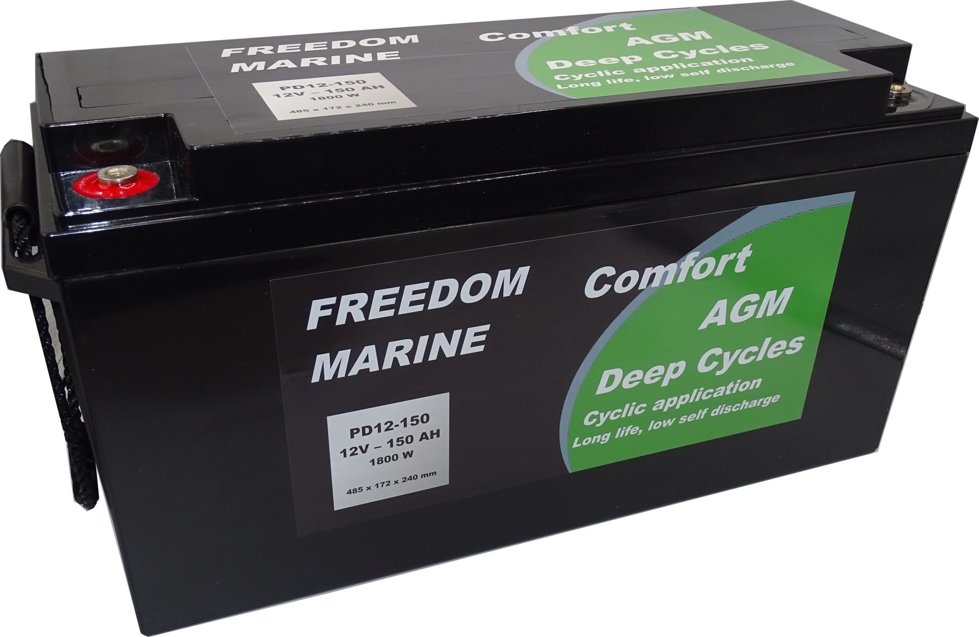 Par leur conception très compacte issue des applications industrielles en armoires, les batteries Freedom Comfort AGM trouvent aisément leur place à bord. Totalement étanches et sans entretien, la technologie absorbed Glass Mat (Fibre de verre imprégnée) offre des performances optimales avec une durée de vie supérieure à 800 Cycles à 50% de DoD. Ne convient pas au démarrage.